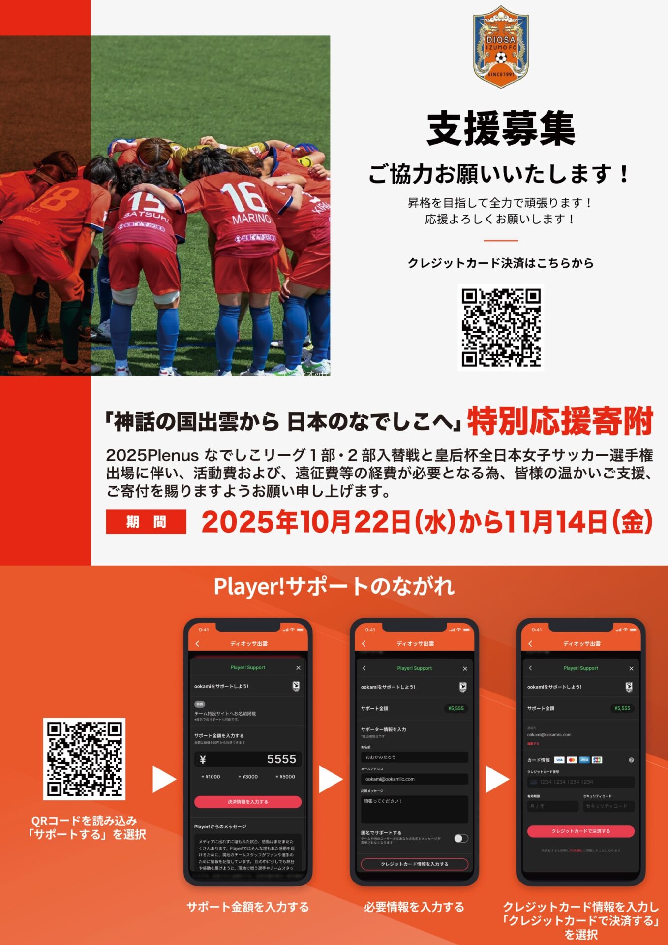 いつもディオッサ出雲FCを応援していただきありがとうございます。