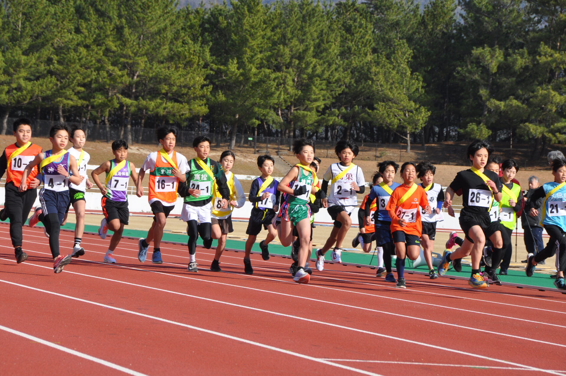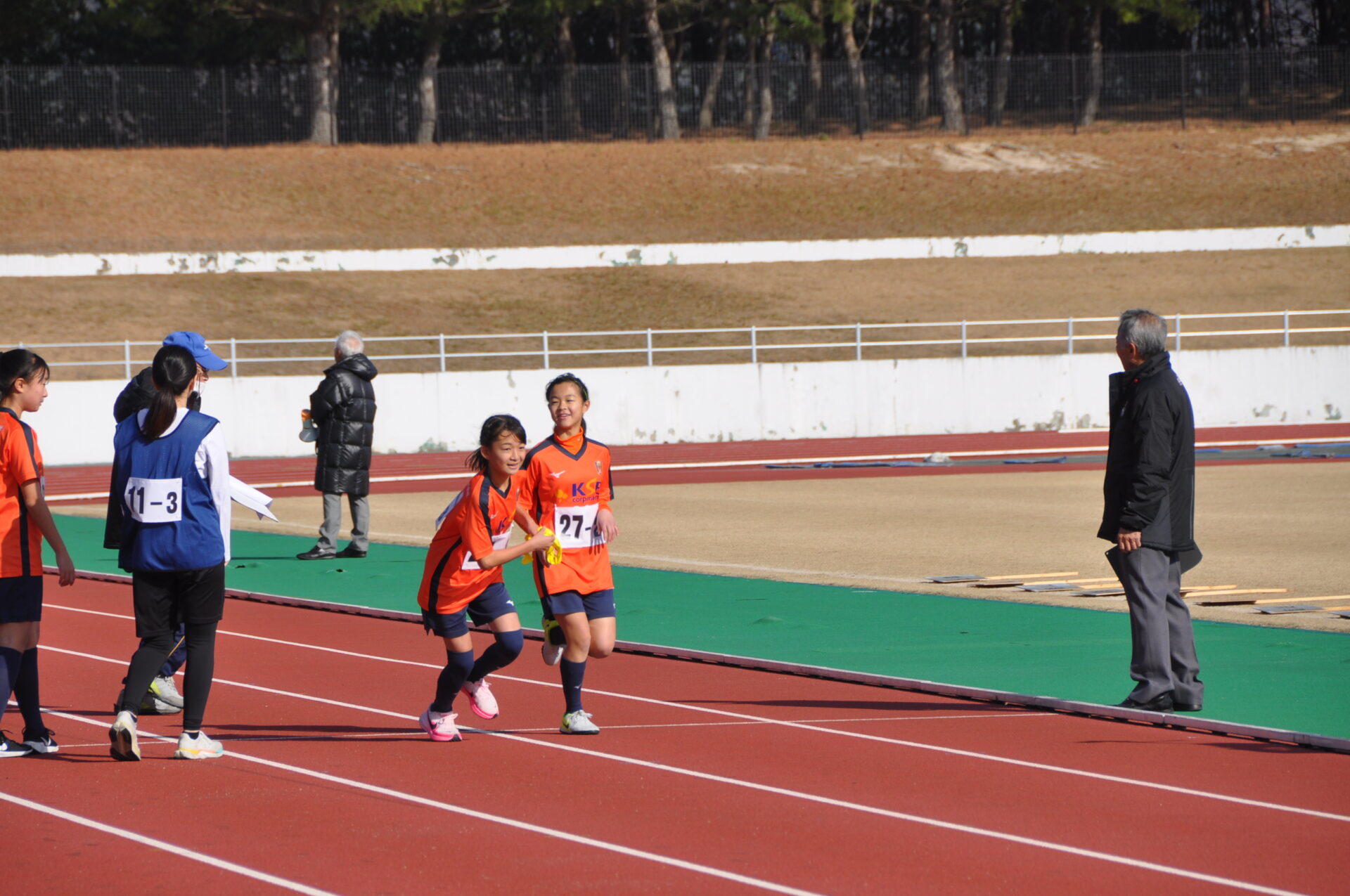 第1区ジュニア(小学生)から順に襷を6区間繋ぎ、ゴールしました。